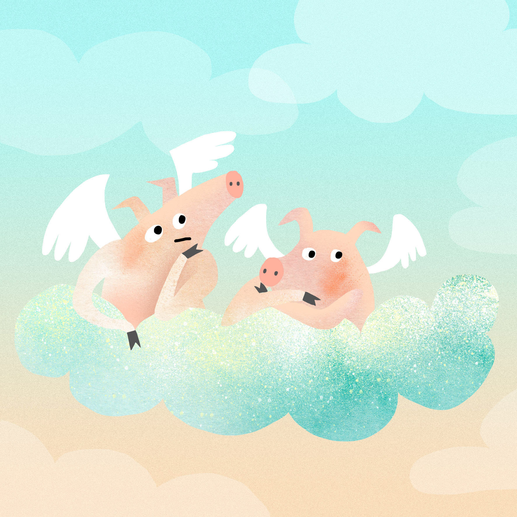 children illustration about pig's life and art